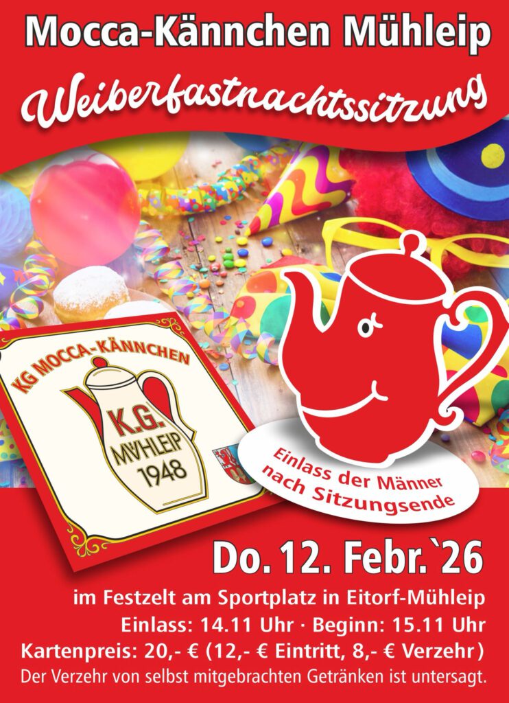 Liebe Freundinnen und Freunde des Mühleiper Karnevals,es ist bald wieder so weit! Der Kartenvorverkauf für unsere beliebten Mocca-Kännchen-Veranstaltungen startet wie gewohnt am 11. November 2025 um 19:11 Uhr. Auch im kommenden […]